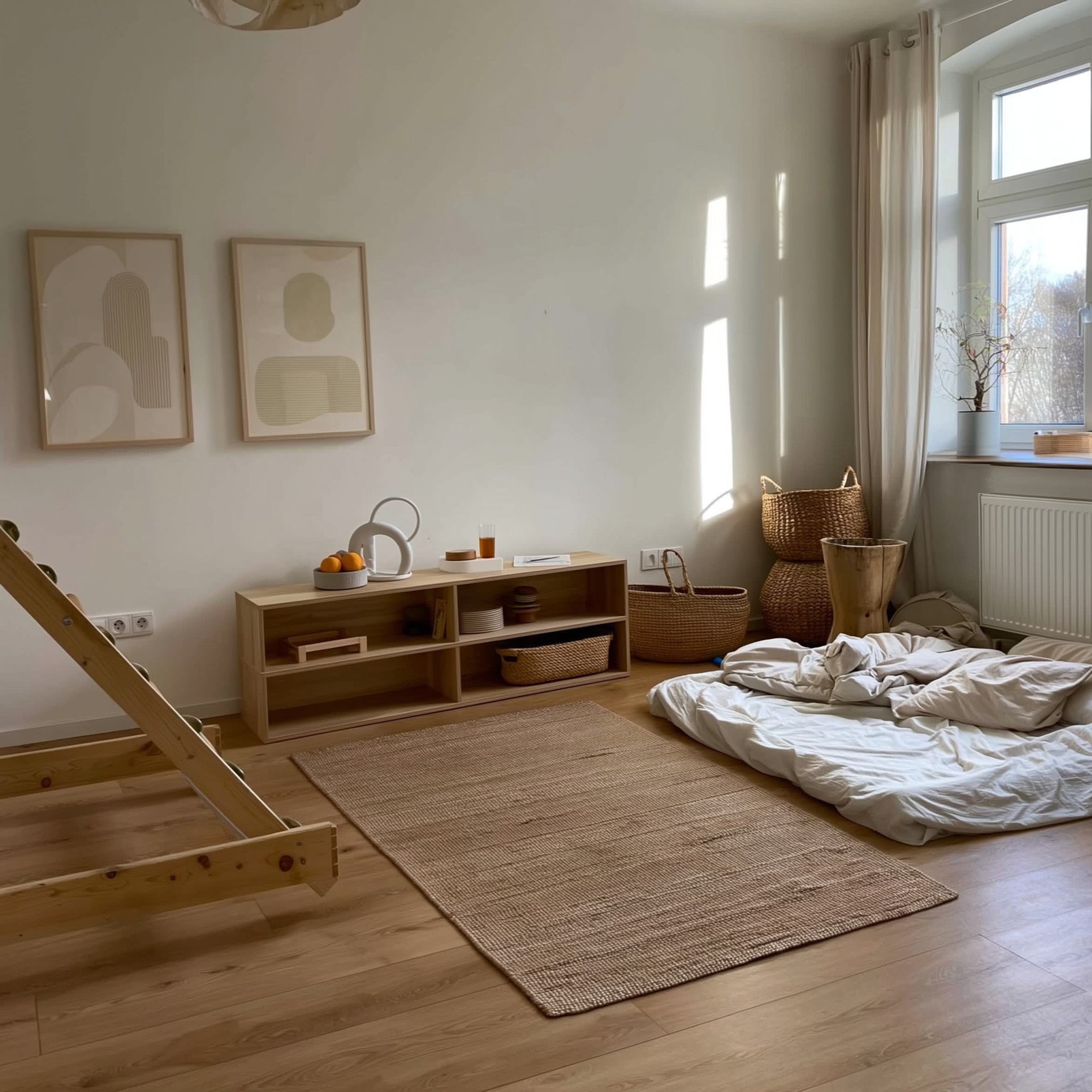 Ganz im Gegenteil. Ein Montessori-Zimmer macht den Alltag leichter. Dein Kind kann Kleidung, Bücher und Spielzeug eigenständig erreichen, was dir Zeit und Nerven spart – und deinem Kind Selbstvertrauen schenkt.